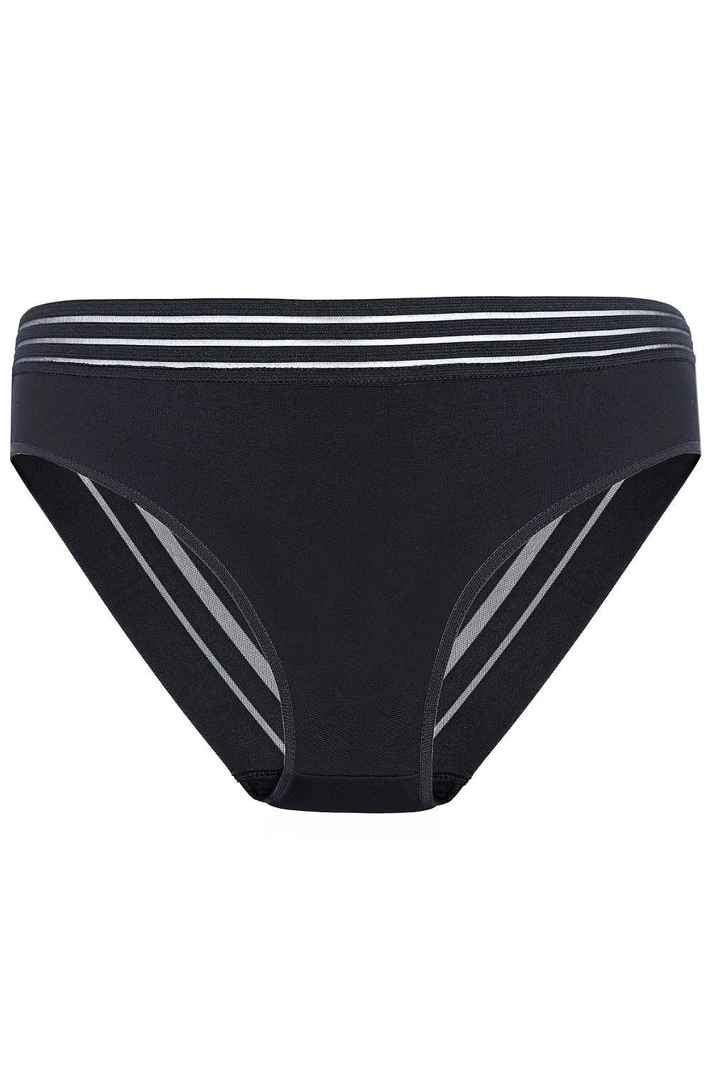 Three-pack of cotton figs with a lace back in stripes. The lace back of the panties prevents them from standing out under clothing. Comfortable cut, perfect for everyday wear. The elastic waistband effectively holds the underwear in place. It is comfortable and does not dig into the body. The gusset is made of cotton with the OEKO-TEX standard, making them pleasant and safe for intimate areas. The front of the panties is made of 100% cotton from a Polish yarn. The panties were designed and made in Poland.